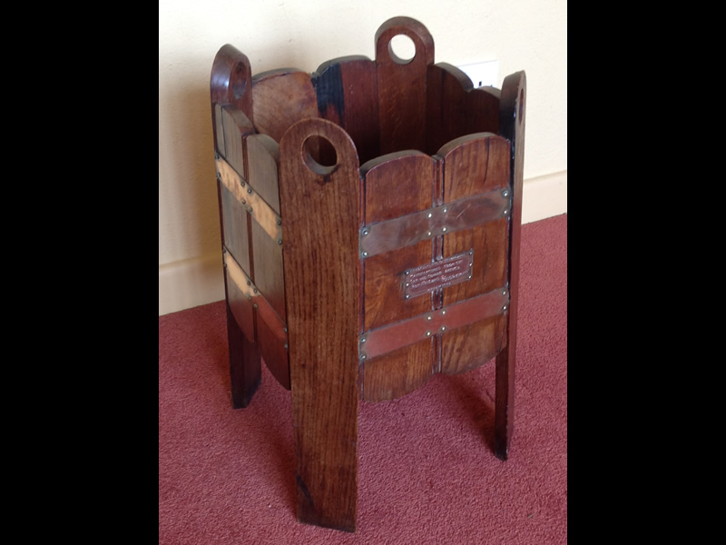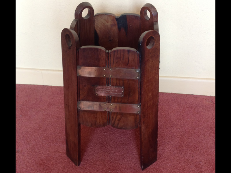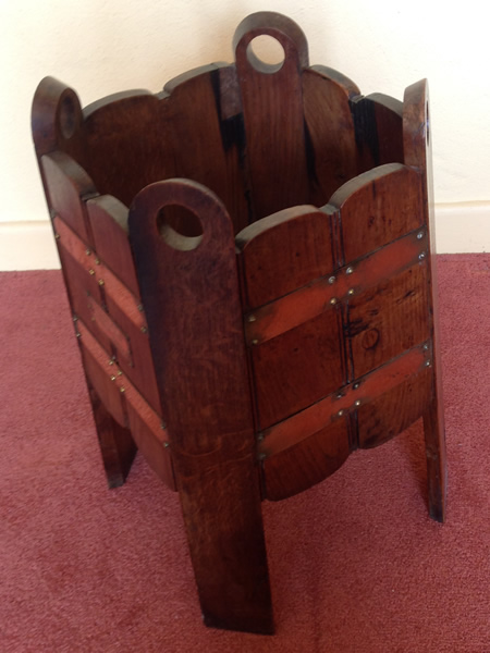 The deliberate use of ‘blackened timbers’ from the ship indicate the jardinière’s naval origins and add to its charm and almost folk art quality.